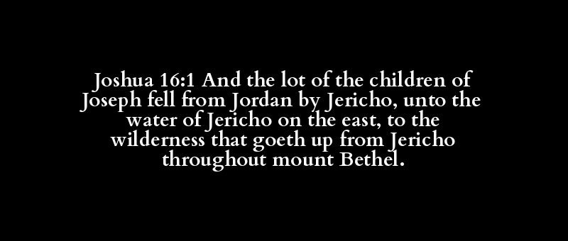 Joshua 16:1 And the lot of the children of Joseph fell from Jordan by Jericho, unto the water of Jericho on the east, to the wilderness that goeth up from Jericho throughout mount Bethel.