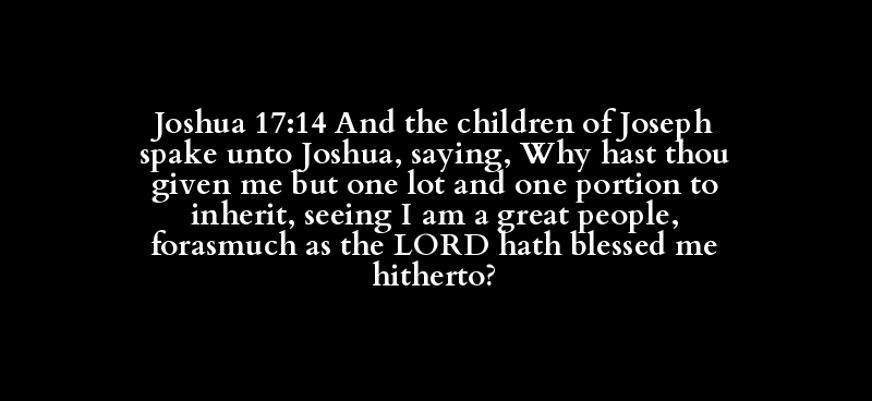 Joshua 17:14 And the children of Joseph spake unto Joshua, saying, Why hast thou given me but one lot and one portion to inherit, seeing I am a great people, forasmuch as the LORD hath blessed me hitherto?