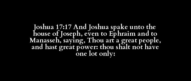 Joshua 17:17 And Joshua spake unto the house of Joseph, even to Ephraim and to Manasseh, saying, Thou art a great people, and hast great power: thou shalt not have one lot only: