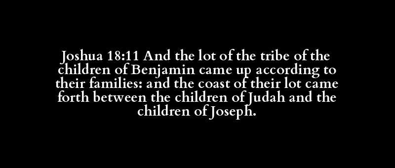 Joshua 18:11 And the lot of the tribe of the children of Benjamin came up according to their families: and the coast of their lot came forth between the children of Judah and the children of Joseph.