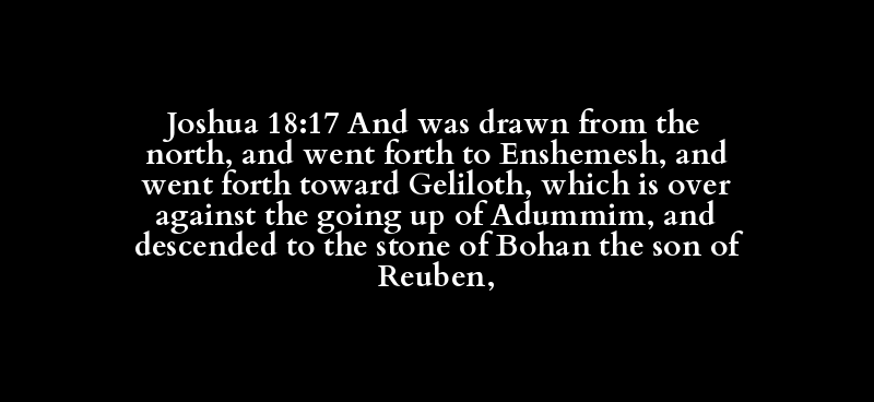 Joshua 18:17 And was drawn from the north, and went forth to Enshemesh, and went forth toward Geliloth, which is over against the going up of Adummim, and descended to the stone of Bohan the son of Reuben,