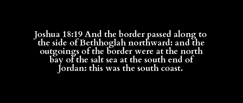 Joshua 18:19 And the border passed along to the side of Bethhoglah northward: and the outgoings of the border were at the north bay of the salt sea at the south end of Jordan: this was the south coast.