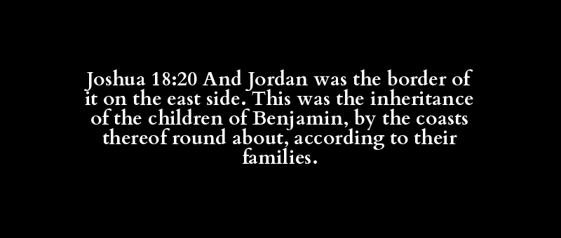 Joshua 18:20 And Jordan was the border of it on the east side. This was the inheritance of the children of Benjamin, by the coasts thereof round about, according to their families.