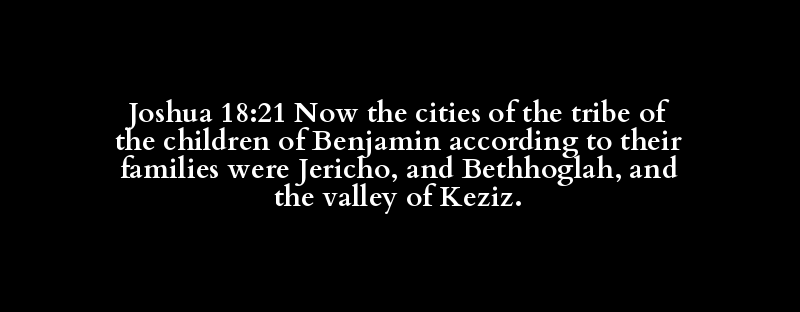 Joshua 18:21 Now the cities of the tribe of the children of Benjamin according to their families were Jericho, and Bethhoglah, and the valley of Keziz.