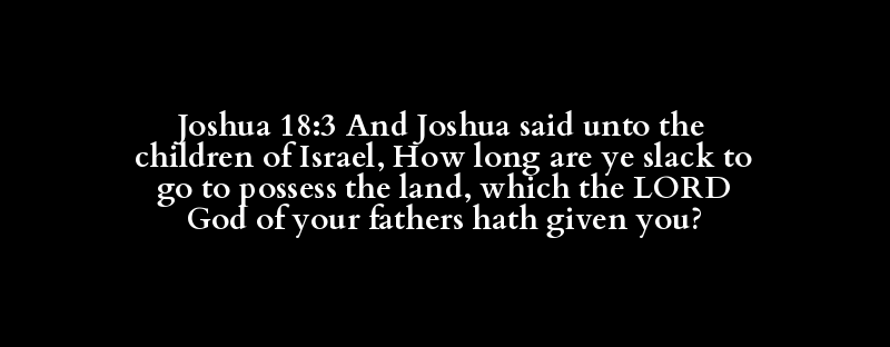 Joshua 18:3 And Joshua said unto the children of Israel, How long are ye slack to go to possess the land, which the LORD God of your fathers hath given you?