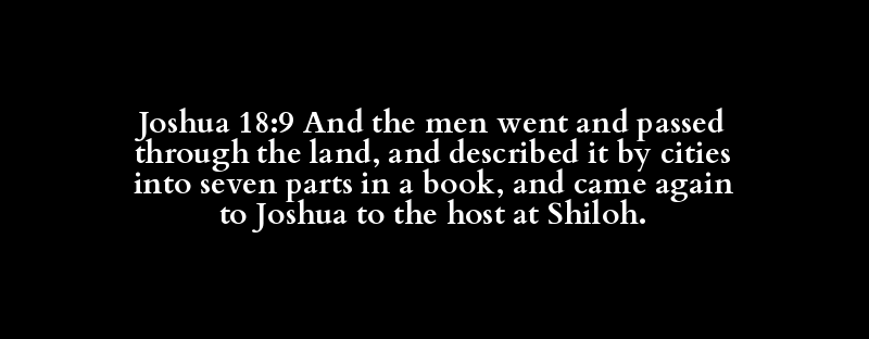 Joshua 18:9 And the men went and passed through the land, and described it by cities into seven parts in a book, and came again to Joshua to the host at Shiloh.
