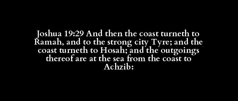 Joshua 19:29 And then the coast turneth to Ramah, and to the strong city Tyre; and the coast turneth to Hosah; and the outgoings thereof are at the sea from the coast to Achzib: