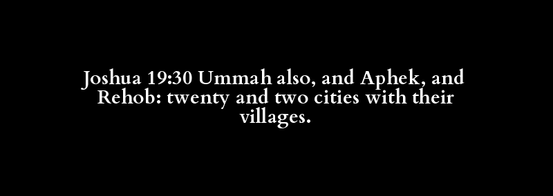 Joshua 19:30 Ummah also, and Aphek, and Rehob: twenty and two cities with their villages.