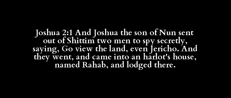Joshua 2:1 And Joshua the son of Nun sent out of Shittim two men to spy secretly, saying, Go view the land, even Jericho. And they went, and came into an harlot's house, named Rahab, and lodged there.