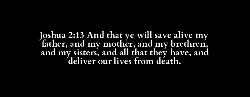Joshua 2:13 And that ye will save alive my father, and my mother, and my brethren, and my sisters, and all that they have, and deliver our lives from death.
