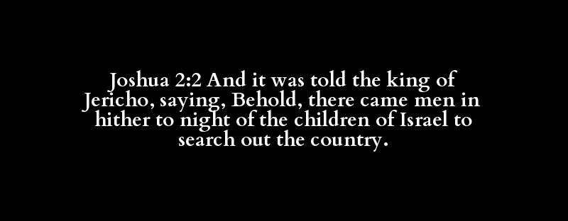 Joshua 2:2 And it was told the king of Jericho, saying, Behold, there came men in hither to night of the children of Israel to search out the country.