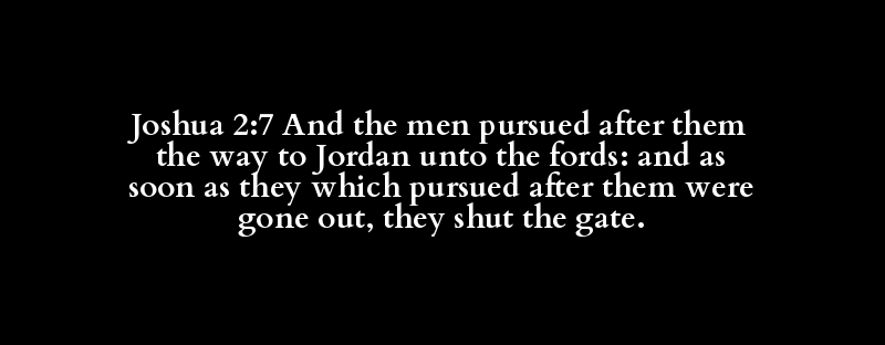 Joshua 2:7 And the men pursued after them the way to Jordan unto the fords: and as soon as they which pursued after them were gone out, they shut the gate.