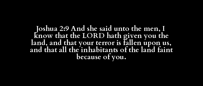 Joshua 2:9 And she said unto the men, I know that the LORD hath given you the land, and that your terror is fallen upon us, and that all the inhabitants of the land faint because of you.