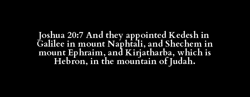 Joshua 20:7 And they appointed Kedesh in Galilee in mount Naphtali, and Shechem in mount Ephraim, and Kirjatharba, which is Hebron, in the mountain of Judah.