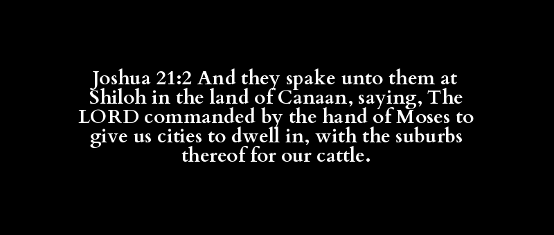 Joshua 21:2 And they spake unto them at Shiloh in the land of Canaan, saying, The LORD commanded by the hand of Moses to give us cities to dwell in, with the suburbs thereof for our cattle.