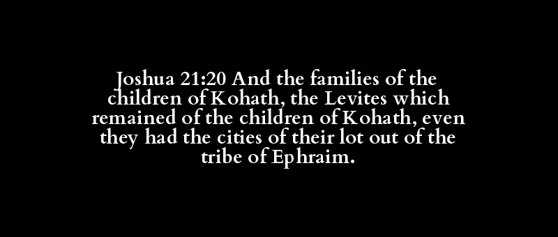 Joshua 21:20 And the families of the children of Kohath, the Levites which remained of the children of Kohath, even they had the cities of their lot out of the tribe of Ephraim.