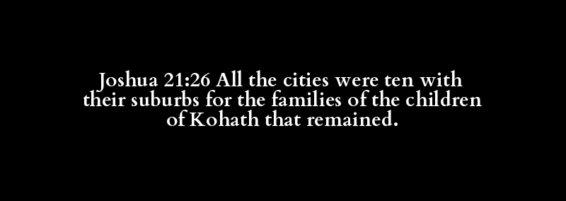Joshua 21:26 All the cities were ten with their suburbs for the families of the children of Kohath that remained.