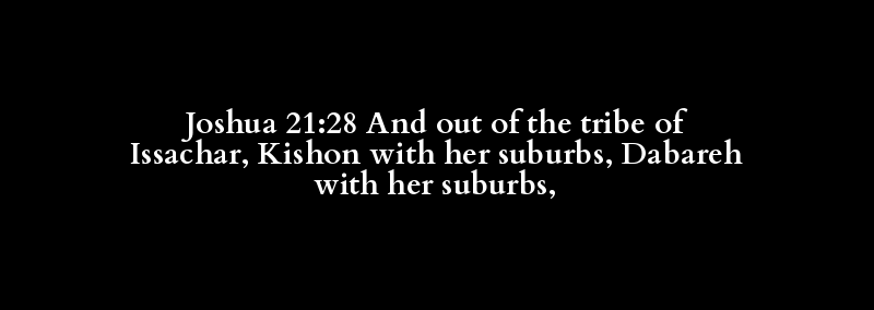 Joshua 21:28 And out of the tribe of Issachar, Kishon with her suburbs, Dabareh with her suburbs,