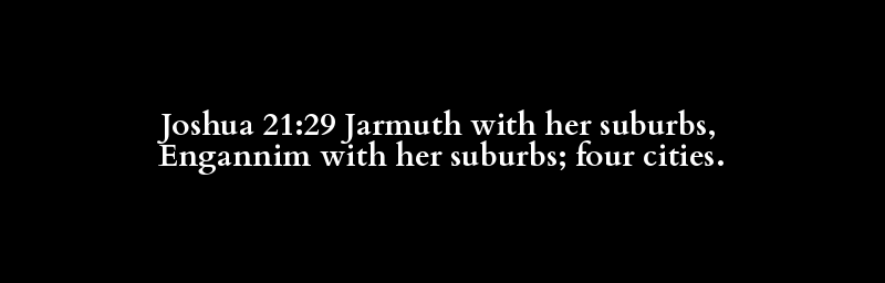 Joshua 21:29 Jarmuth with her suburbs, Engannim with her suburbs; four cities.