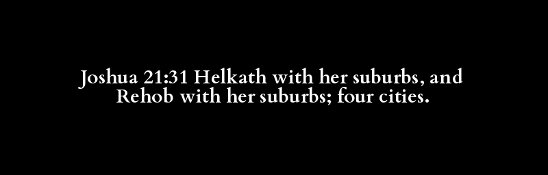 Joshua 21:31 Helkath with her suburbs, and Rehob with her suburbs; four cities.