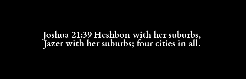 Joshua 21:39 Heshbon with her suburbs, Jazer with her suburbs; four cities in all.