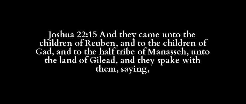 Joshua 22:15 And they came unto the children of Reuben, and to the children of Gad, and to the half tribe of Manasseh, unto the land of Gilead, and they spake with them, saying,