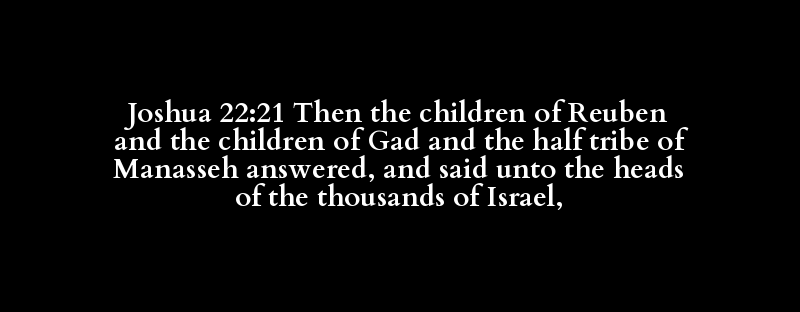 Joshua 22:21 Then the children of Reuben and the children of Gad and the half tribe of Manasseh answered, and said unto the heads of the thousands of Israel,