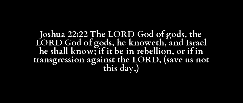 Joshua 22:22 The LORD God of gods, the LORD God of gods, he knoweth, and Israel he shall know; if it be in rebellion, or if in transgression against the LORD, (save us not this day,)