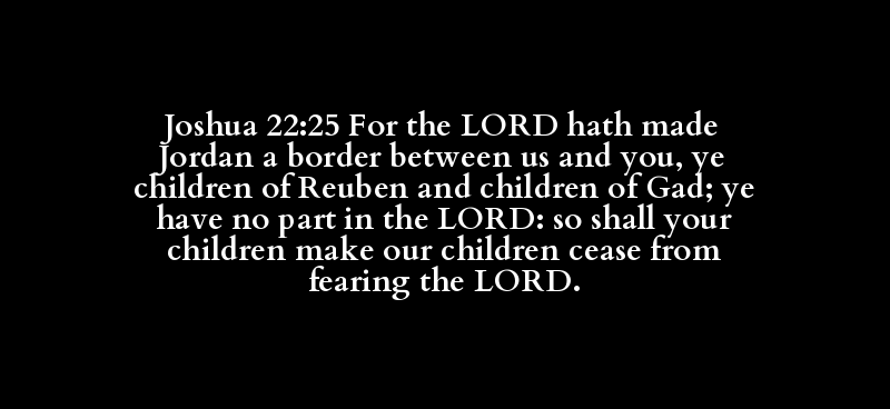 Joshua 22:25 For the LORD hath made Jordan a border between us and you, ye children of Reuben and children of Gad; ye have no part in the LORD: so shall your children make our children cease from fearing the LORD.