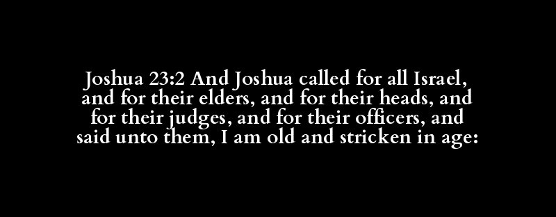 Joshua 23:2 And Joshua called for all Israel, and for their elders, and for their heads, and for their judges, and for their officers, and said unto them, I am old and stricken in age: