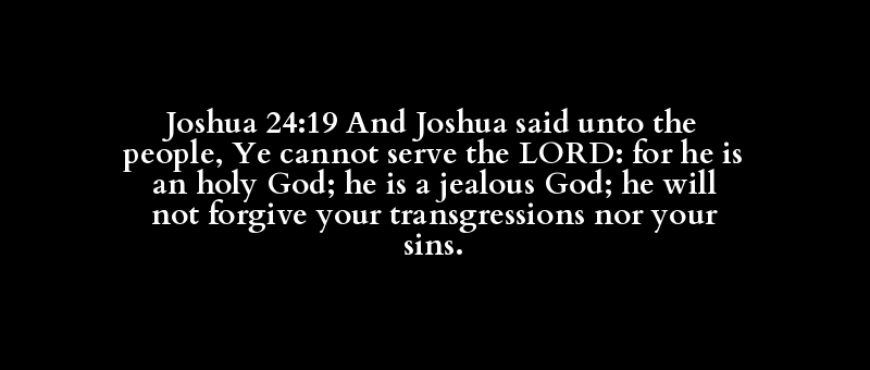 Joshua 24:19 And Joshua said unto the people, Ye cannot serve the LORD: for he is an holy God; he is a jealous God; he will not forgive your transgressions nor your sins.
