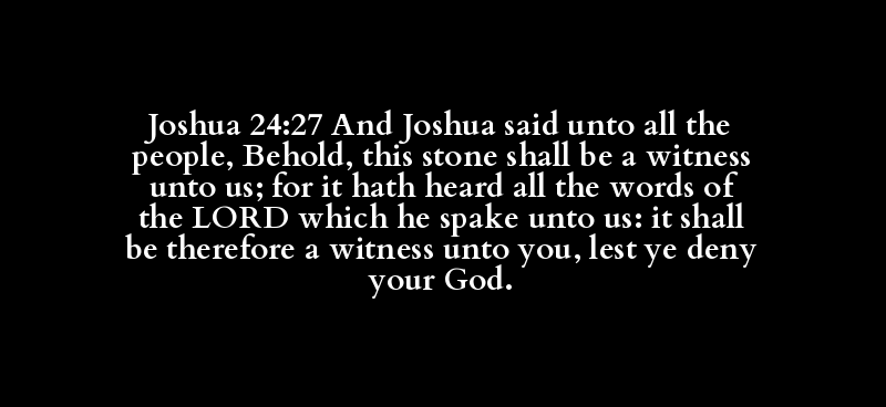 Joshua 24:27 And Joshua said unto all the people, Behold, this stone shall be a witness unto us; for it hath heard all the words of the LORD which he spake unto us: it shall be therefore a witness unto you, lest ye deny your God.