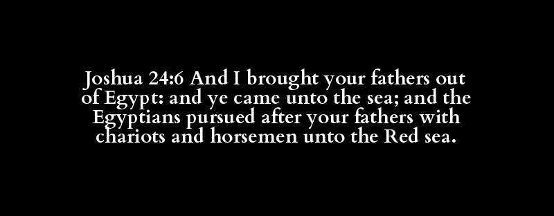 Joshua 24:6 And I brought your fathers out of Egypt: and ye came unto the sea; and the Egyptians pursued after your fathers with chariots and horsemen unto the Red sea.