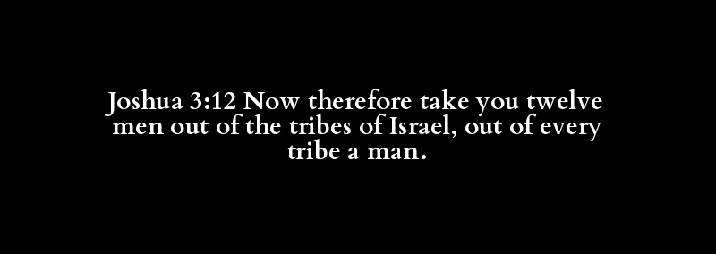 Joshua 3:12 Now therefore take you twelve men out of the tribes of Israel, out of every tribe a man.