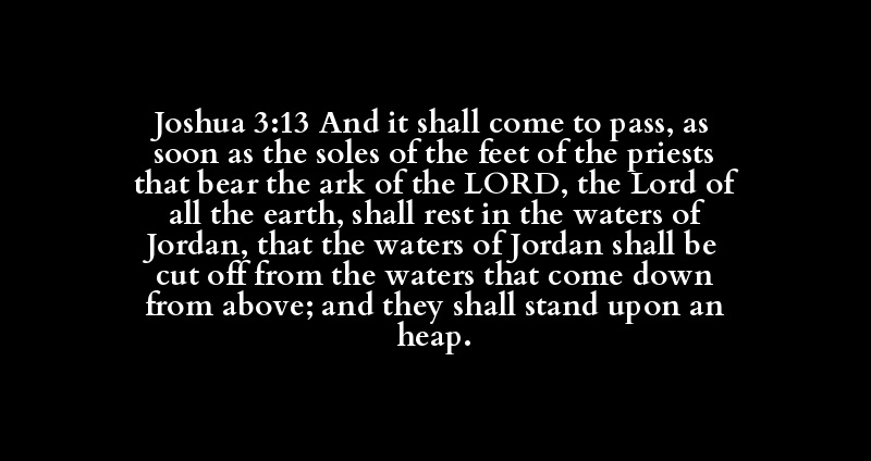 Joshua 3:13 And it shall come to pass, as soon as the soles of the feet of the priests that bear the ark of the LORD, the Lord of all the earth, shall rest in the waters of Jordan, that the waters of Jordan shall be cut off from the waters that come down from above; and they shall stand upon an heap.