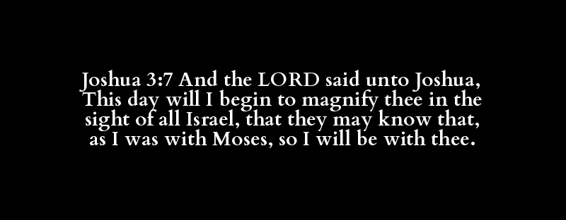Joshua 3:7 And the LORD said unto Joshua, This day will I begin to magnify thee in the sight of all Israel, that they may know that, as I was with Moses, so I will be with thee.