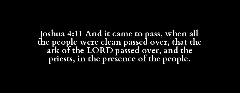 Joshua 4:11 And it came to pass, when all the people were clean passed over, that the ark of the LORD passed over, and the priests, in the presence of the people.