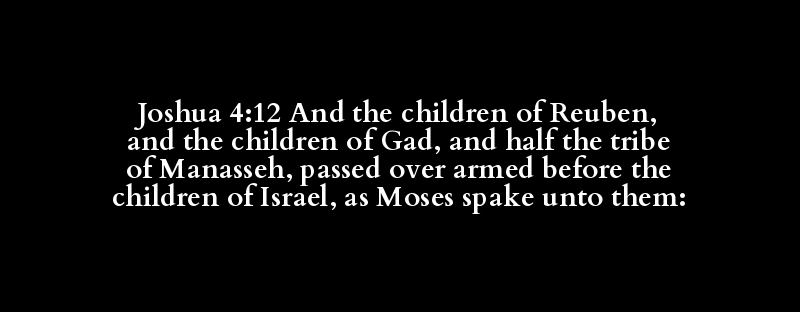 Joshua 4:12 And the children of Reuben, and the children of Gad, and half the tribe of Manasseh, passed over armed before the children of Israel, as Moses spake unto them: