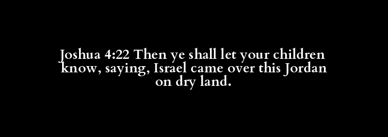 Joshua 4:22 Then ye shall let your children know, saying, Israel came over this Jordan on dry land.