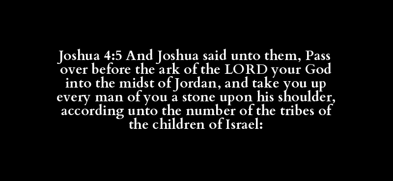 Joshua 4:5 And Joshua said unto them, Pass over before the ark of the LORD your God into the midst of Jordan, and take you up every man of you a stone upon his shoulder, according unto the number of the tribes of the children of Israel: