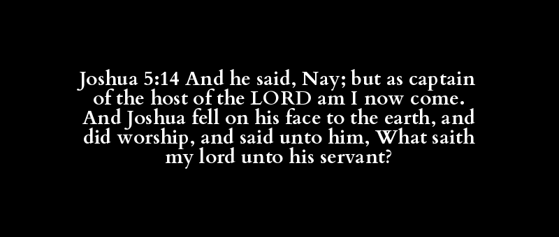 Joshua 5:14 And he said, Nay; but as captain of the host of the LORD am I now come. And Joshua fell on his face to the earth, and did worship, and said unto him, What saith my lord unto his servant?