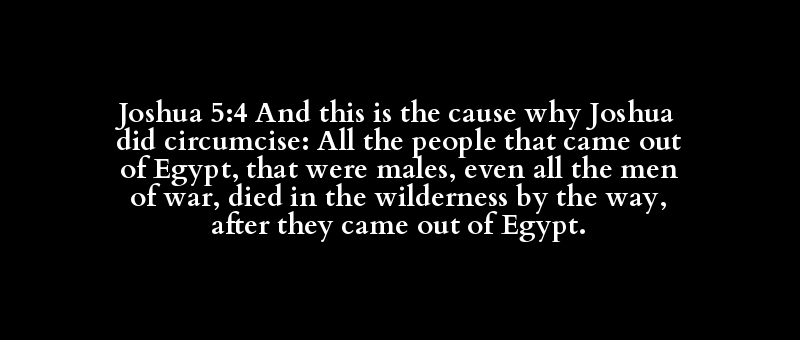 Joshua 5:4 And this is the cause why Joshua did circumcise: All the people that came out of Egypt, that were males, even all the men of war, died in the wilderness by the way, after they came out of Egypt.
