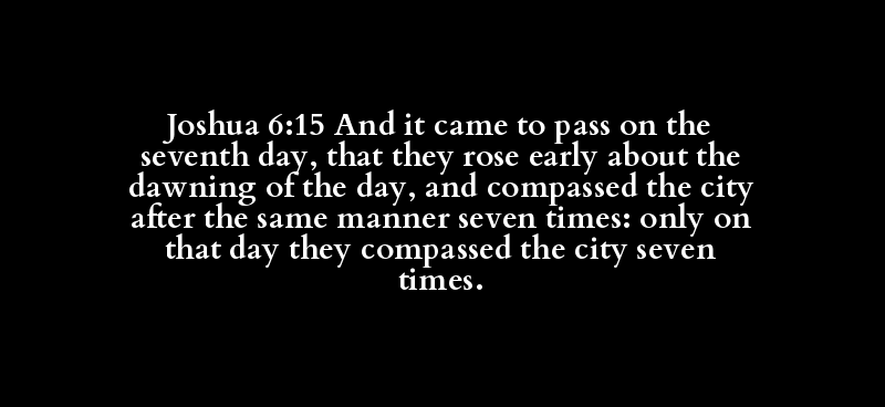 Joshua 6:15 And it came to pass on the seventh day, that they rose early about the dawning of the day, and compassed the city after the same manner seven times: only on that day they compassed the city seven times.