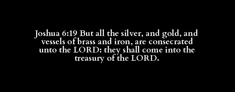 Joshua 6:19 But all the silver, and gold, and vessels of brass and iron, are consecrated unto the LORD: they shall come into the treasury of the LORD.