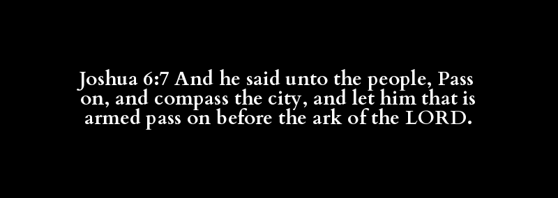 Joshua 6:7 And he said unto the people, Pass on, and compass the city, and let him that is armed pass on before the ark of the LORD.