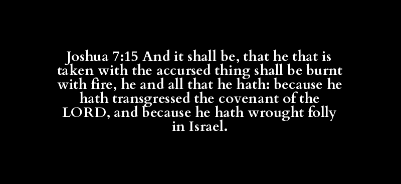 Joshua 7:15 And it shall be, that he that is taken with the accursed thing shall be burnt with fire, he and all that he hath: because he hath transgressed the covenant of the LORD, and because he hath wrought folly in Israel.