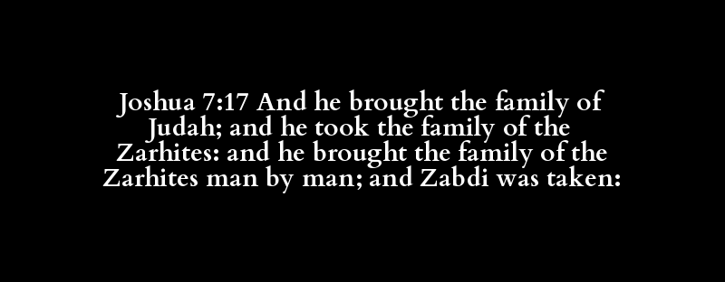 Joshua 7:17 And he brought the family of Judah; and he took the family of the Zarhites: and he brought the family of the Zarhites man by man; and Zabdi was taken: