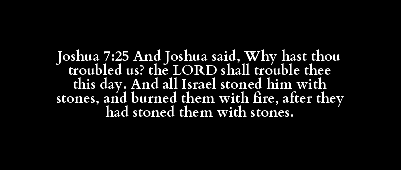 Joshua 7:25 And Joshua said, Why hast thou troubled us? the LORD shall trouble thee this day. And all Israel stoned him with stones, and burned them with fire, after they had stoned them with stones.