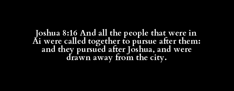 Joshua 8:16 And all the people that were in Ai were called together to pursue after them: and they pursued after Joshua, and were drawn away from the city.