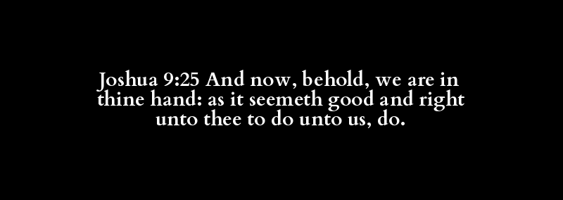 Joshua 9:25 And now, behold, we are in thine hand: as it seemeth good and right unto thee to do unto us, do.